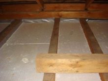 - ensuite, on y place une isolation thermique (s’il s’agit de laine minérale, l’épaisseur de la couche doit être d’environ 200-250 mm;