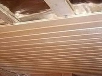 Afin de décider de la tactique à suivre pour effectuer des travaux d’isolation thermique, il est nécessaire de déterminer si la base du plafond est elle-même un ourlet ou un fond plat. Dans le cas d'une base ourlante, une planche est cousue sur les poutres de support installées (en bas). Dans ce cas, les barres de l'intérieur sont fermées et ne sont laissées que dans le grenier.