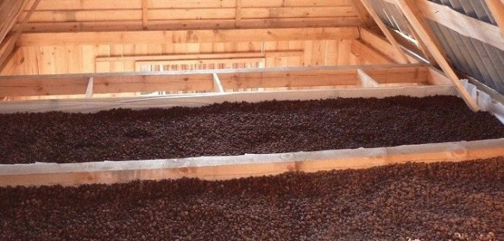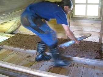 Si vous décidez d'isoler le plafond avec un mélange d'argile et de sciure de bois, vous devez tenir compte du fait que lors de l'utilisation du bain à la saison chaude, l'épaisseur de couche optimale peut être de 50 mm. Si vous allez vous y baigner et en hiver, il est préférable de mettre un appareil de chauffage avec une couche de 150 mm.
