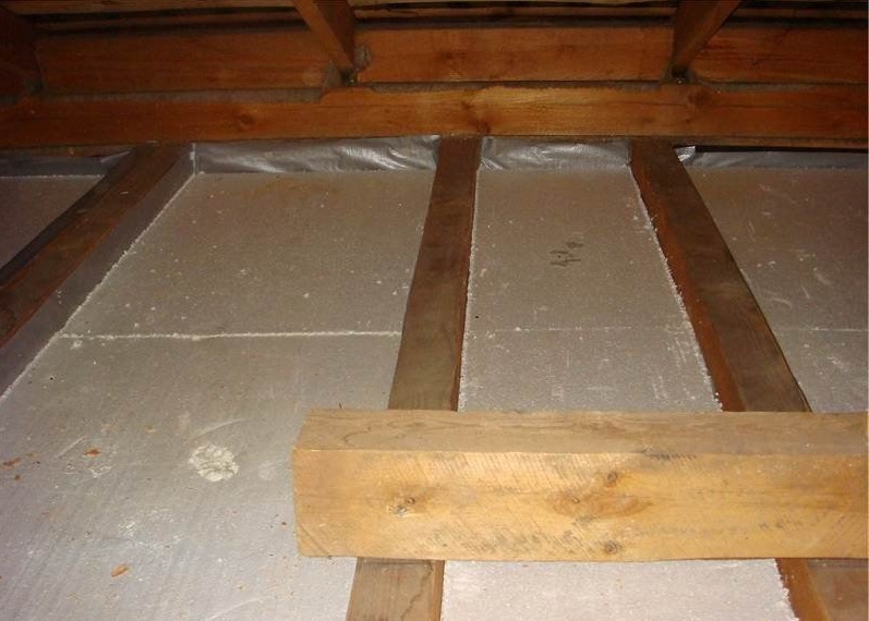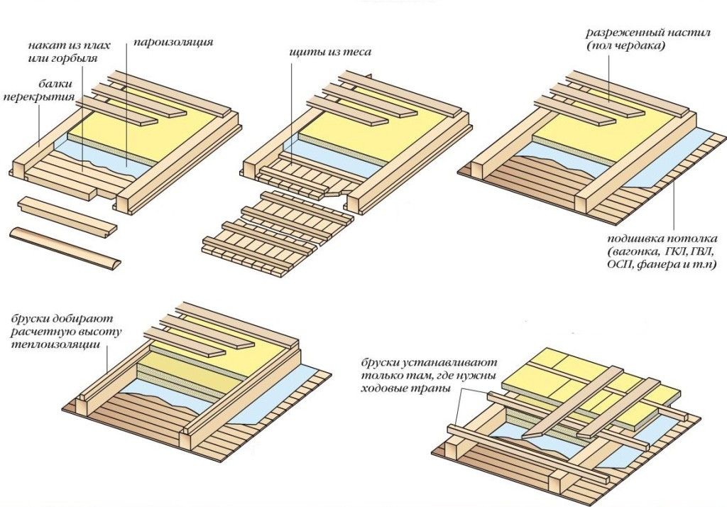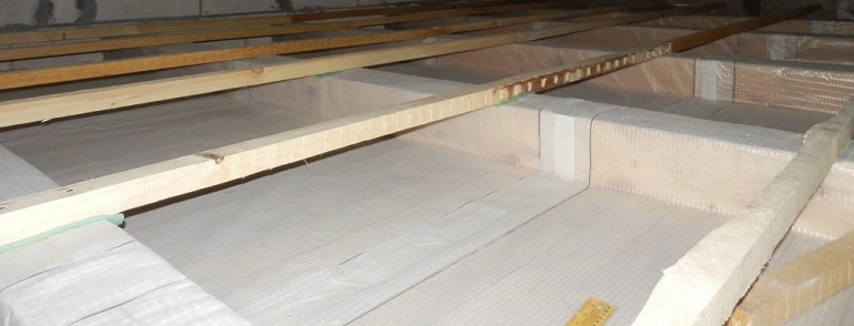 Si la méthode de chevauchement est plate, la planche est fixée au-dessus des barres. Ainsi, dans le grenier est créé. Les bars eux-mêmes restent sur le territoire du hammam.