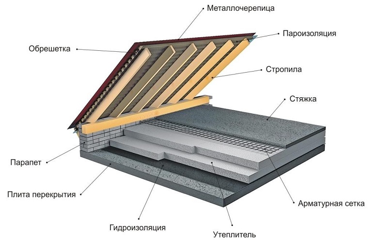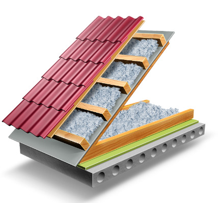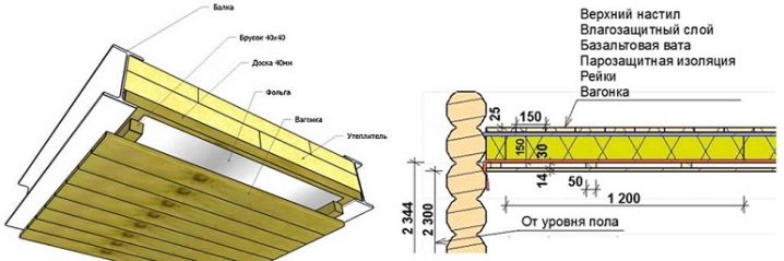 Si nous parlons de l'isolation du plafond à l'intérieur du plafond, la disposition des matériaux sera la suivante: