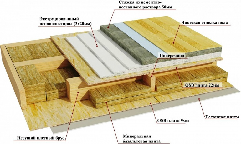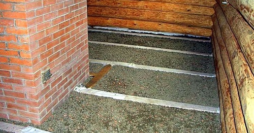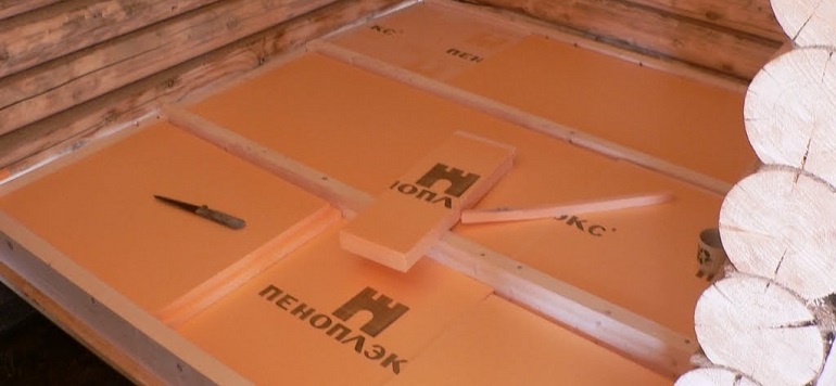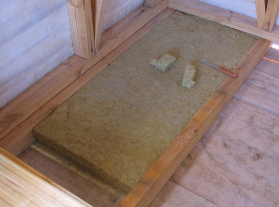 Si le chevauchement est constitué de rondins, il est nécessaire de construire une caisse à partir du bord de la baignoire. En même temps, il est nécessaire de couvrir les bûches avec un pare-vapeur, de recouvrir d’une couche de sable de 20 cm et d’effectuer ensuite l’isolation de la manière habituelle.