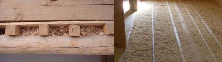 Si vous décidez d'isoler le plafond dans la baignoire avec de la sciure de bois, vous devez tenir compte du fait que ce type de matériau est le plus dangereux en cas d'incendie. Dans ce cas, ne pas aider le retardateur de flamme. De plus, la sciure de bois est très sale et, en cas de courant d'air, elles se dispersent progressivement dans le bain.