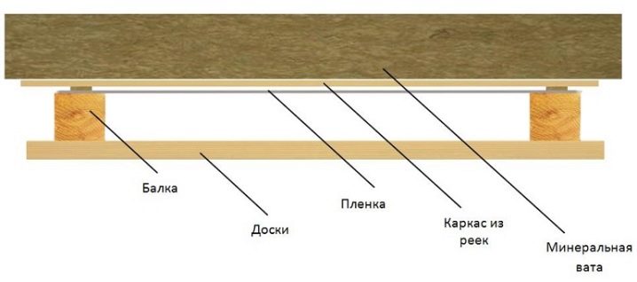 S'il y a une isolation thermique de l'intérieur du plafond forgé, le schéma de travail sera le suivant: