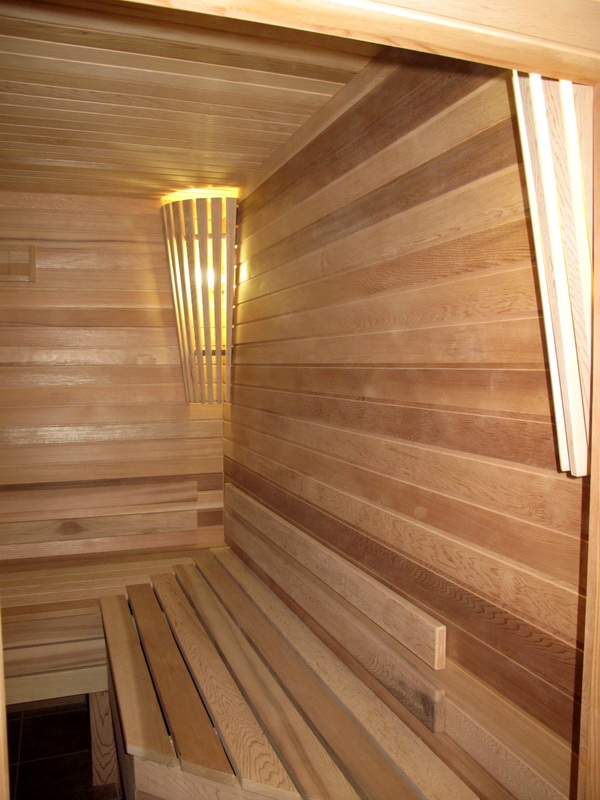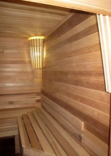 - Lors de la finition, différents types de bois sont utilisés - le bois de conifères se comportera bien dans la plupart des salles de bain, et pour un hammam, il est préférable d’acheter du mélèze plus cher.