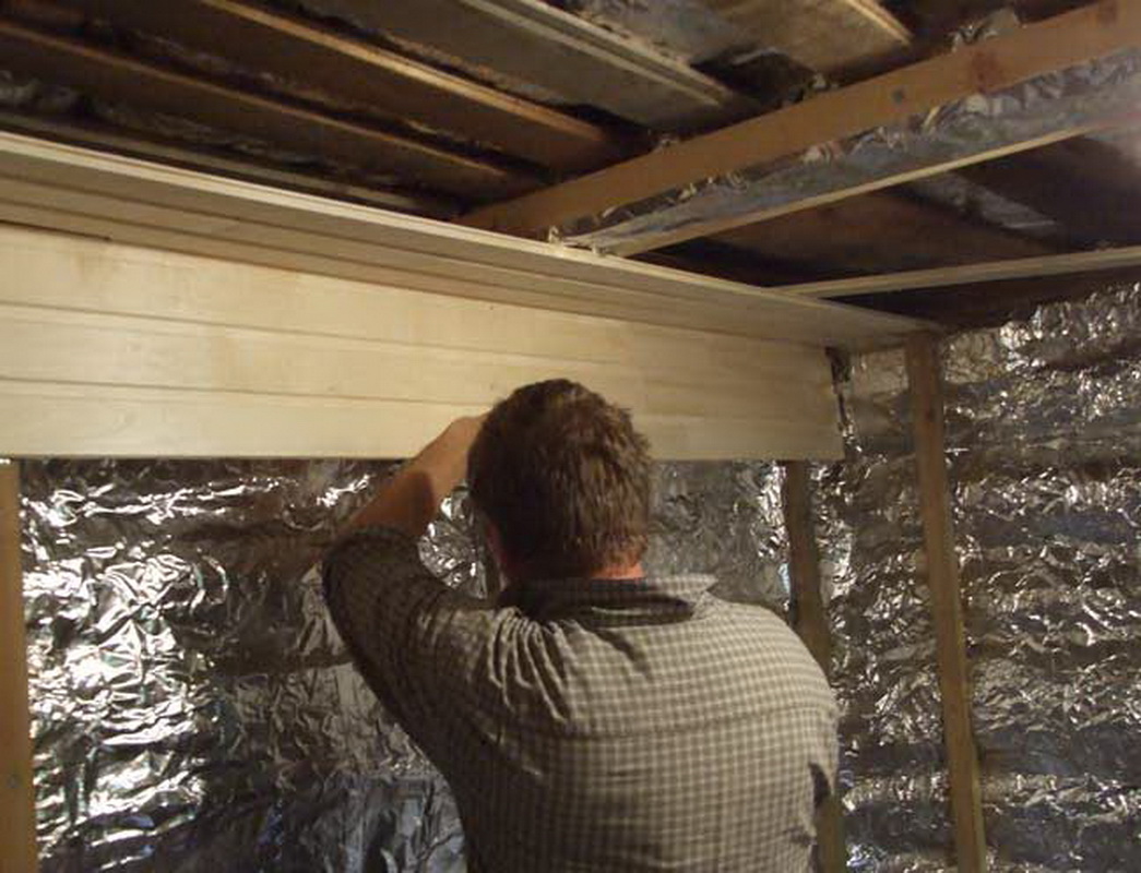 Les hammams plus ventilés sont considérés comme des pièces dans lesquelles la doublure est terminée. L’avantage de l’installation horizontale est également la possibilité de remplacer rapidement et facilement les panneaux dans la partie inférieure du mur et au sol. Cette option est la plus optimale pour les bains, fabriqués dans le style traditionnel russe.