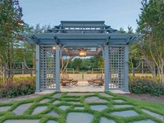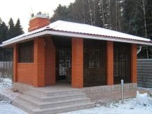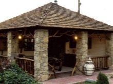Par exemple, une variante de la construction en pierre ou en brique prévoit l'utilisation à l'intérieur d'objets massifs et d'accessoires. Le but est également important: si un belvédère est nécessaire comme un coin confortable, à l'abri des regards indiscrets, la structure doit être fermée.