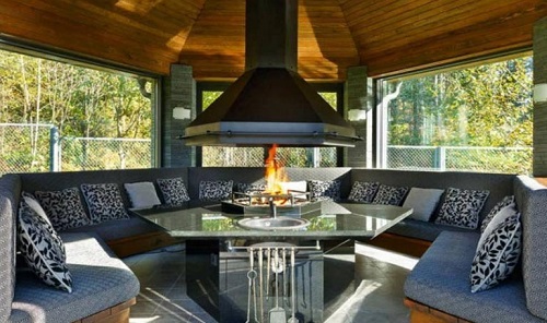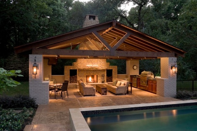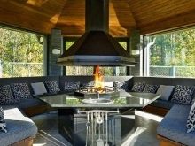Par exemple, tout le monde ne sera pas à l'aise dans un bâtiment en bois brut avec un poêle, tandis qu'une option en pierre et en brique peut être très hospitalière,si vous ajoutez de la pierre ou des carreaux au bâtiment, installez des meubles en osier, disposez l'éclairage autour du périmètre, placez les meubles rembourrés près du foyer. Cependant, à l'intérieur du bâtiment en bois, vous pouvez créer la bonne atmosphère.