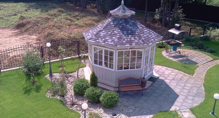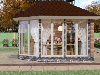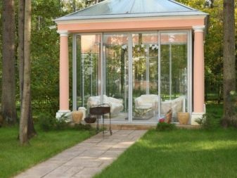 Gazebos fermés peut être utilisé toute l'année, car les propriétaires les équipent non seulement de murs et de fenêtres vitrées, mais également de systèmes de communication. Souvent, ces installations ressemblent complètement à des maisons à part entière, car elles disposent de systèmes de chauffage, d’électricité, d’alimentation en eau et d’assainissement. En plus, ils se caractérisent par la présence de systèmes de ventilation.
