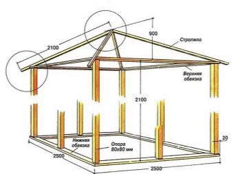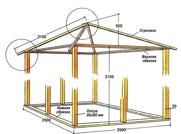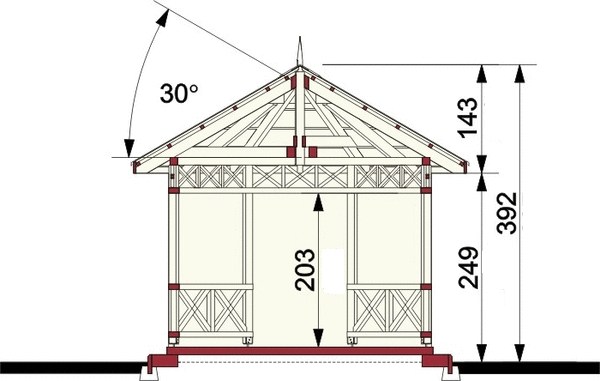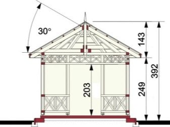 Les dimensions des arbres peuvent être différentes. Par exemple, les variantes de la forme octogonale peuvent occuper en moyenne un espace de 3x3, 3,5x3,5, 4x4 m avec une hauteur de 2,3 à 2,4 m du sol au plafond. La taille standard la plus populaire des bâtiments carrés est le paramètre 4x4 m.. Les projets sous forme de rectangle permettent un placement plus commode des meubles et donnent plus de liberté pour se déplacer à l'intérieur.