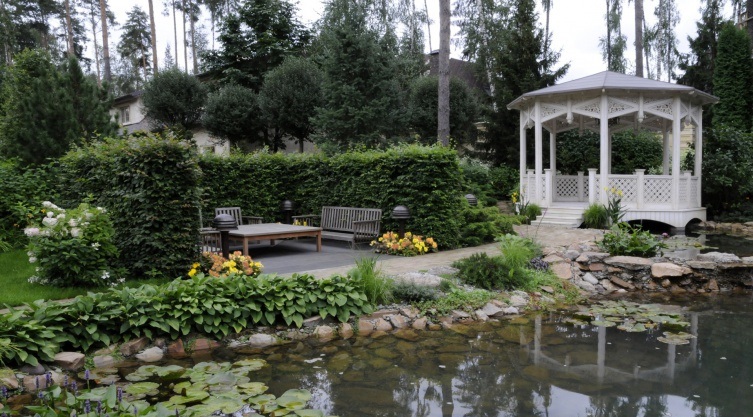 Aujourd'hui, les gazebos ont cessé d'être des structures strictement fonctionnelles de protection contre le soleil brûlant et la pluie. La liberté de créativité est la bienvenue, mais la conception est soumise à toute une série de normes, à commencer par le choix de l'emplacement au stade de la conception. Par exemple, une excellente solution est les kiosques de quartier avec un petit étang.
