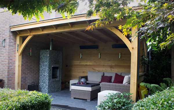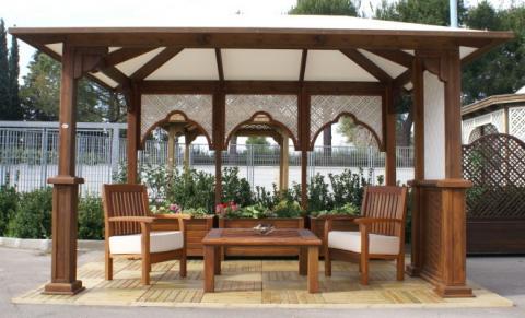 - Tonnelle avec une plate-forme latérale vous permet de distinguer la zone de cuisson et un lieu de repos.