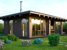 - Un belvédère fermé avec des fenêtres «au sol» et une garniture extérieure en briques de parement de deux couleurs ressemble à un tout à fait indépendant, tandis que le bâtiment est chauffé par un poêle. Vous pouvez l'utiliser non seulement comme lieu de rassemblement pour les invités, quelle que soit la météo, mais également comme une aile de vie.
