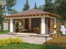 Un gazebo de style moderne peut ressembler à un mini-café, où les murs bas servent de comptoir de bar. Dans un tel gazebo sera commode d'agir et l'hôtesse. Sous le toit du bâtiment d'été, vous pouvez vous réunir avec une grande entreprise et organiser une réunion dans un cercle intime.