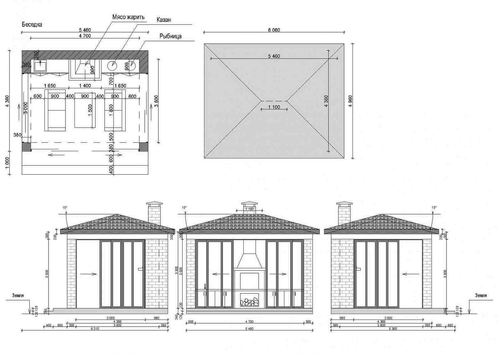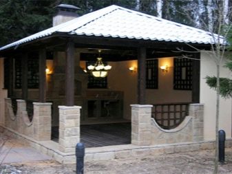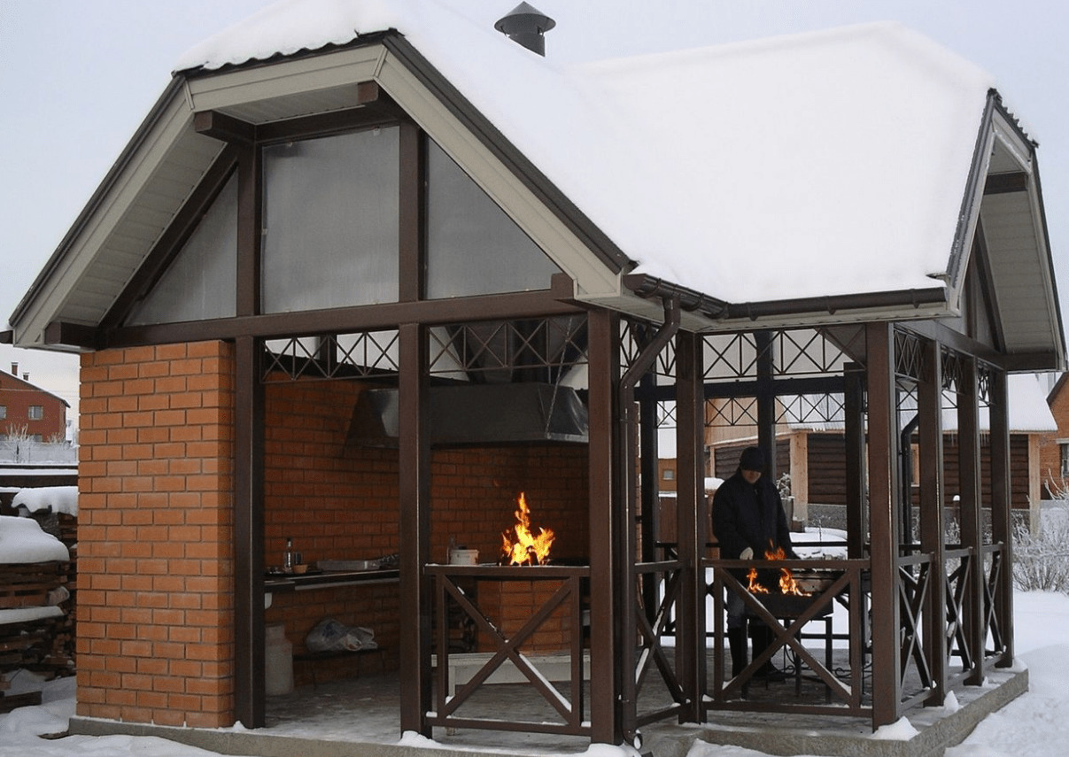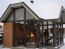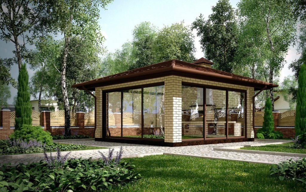 Ouverte avec barbecue ou barbecue vous permettent de vous réunir sur un barbecue par une chaude journée d'été. Les kiosques de jardin vitrés, les gazebos sont bien chauffés par le soleil, ce qui permet de faire fonctionner de telles structures jusqu'à la fin de l'automne, même si elles ne disposent pas de fours.