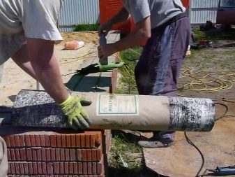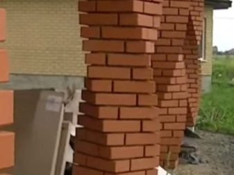 Pour commencer avec une brique, il faudrait imposer des supports en métal qui soutiendront le toit. Autour des tuyaux peuvent être mis sur quatre briques.. Le vide entre les briques et le tuyau est rempli de mortier de ciment. Il est versé progressivement.