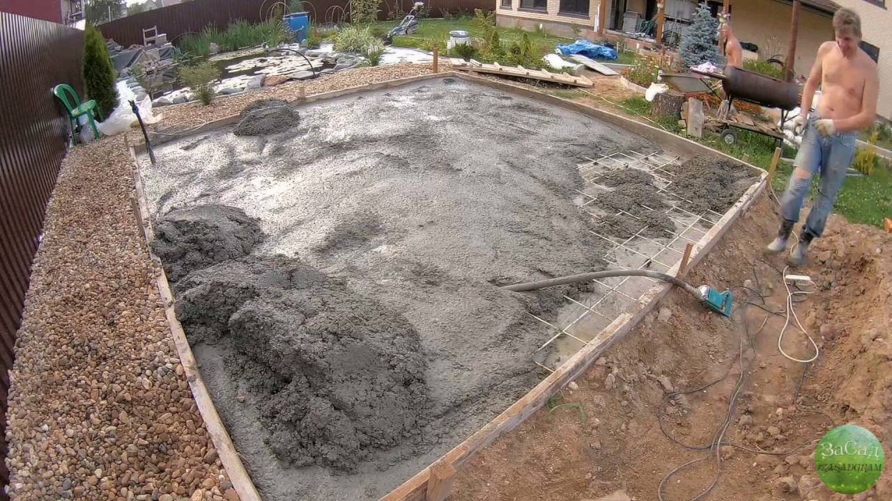 Dans la solution, une partie du ciment prend trois parties de sable et cinq parties de gravats. La quantité d'eau doit être telle que la solution puisse maintenir la fluidité. Avec le mélange obtenu, la fondation est coulée à la moitié de la hauteur, puis l’armature est posée et connectée avec un fil spécial à un réseau solide, puis la fondation est ajoutée et la solution est nivelée.