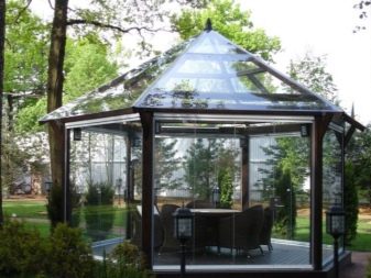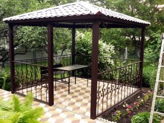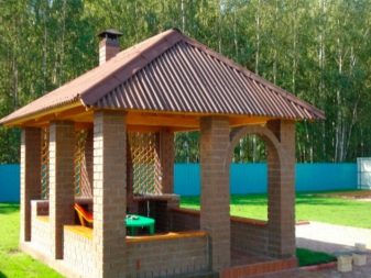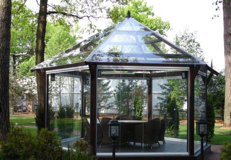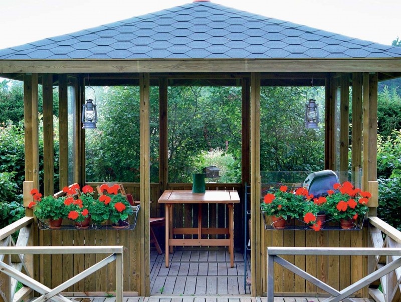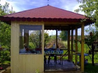 En ce qui concerne la couverture, ici chaque propriétaire choisit individuellement. Mais le matériau de couverture est également calculé en tenant compte de l'utilisation des gazebos: toutes saisons ou uniquement en été. Il existe même une catégorie de toits mobiles qui peuvent être pliés et enlevés pour l'hiver avant l'apparition de la chaleur.