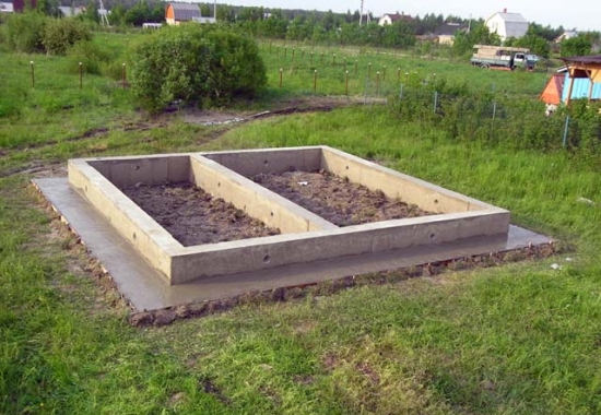 La construction peut commencer à partir de la fondation, si le sol sur le site n’est pas satisfait de son uniformité, de sa stabilité et, en général, simplement vouloir sentir le sol sous vos pieds. Il existe de nombreuses variantes de cet élément: de la ceinture la plus simple en passant par les pieux vissés, en passant par les pneus d'origine.