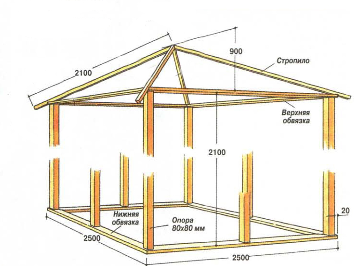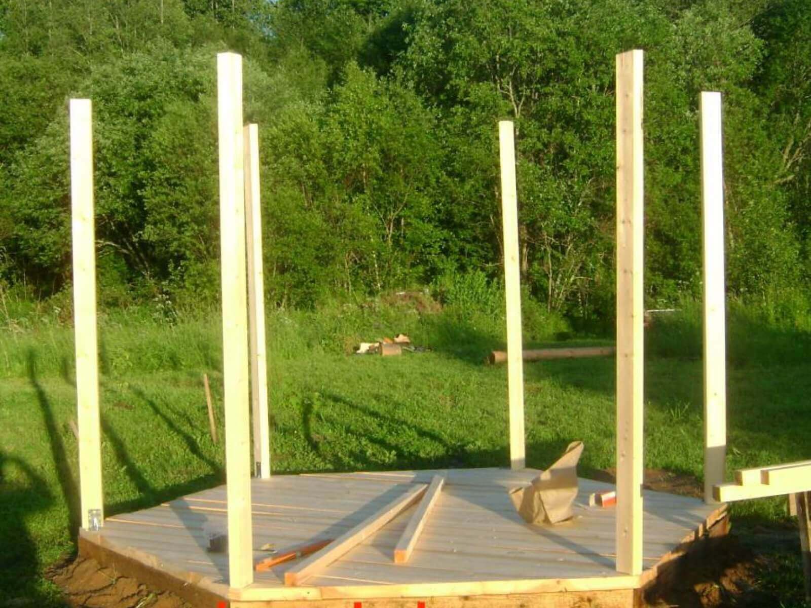 La forme optimale et largement utilisée est considérée comme une base en colonne pour une tonnelle en n'importe quel matériau sans murs. Plus le design est lourd, plus son support doit être complet.