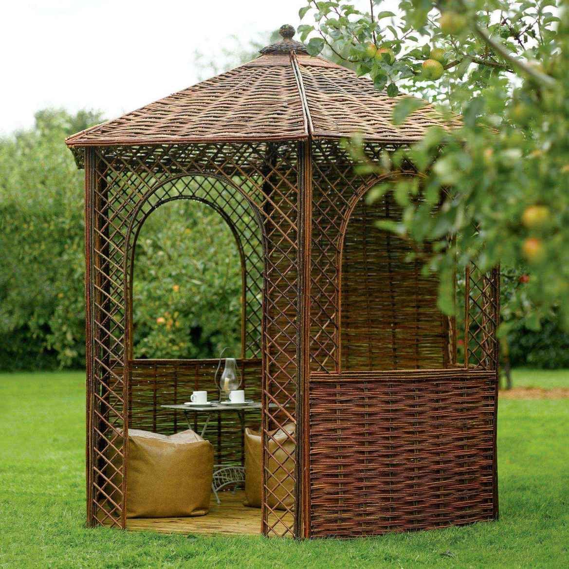 Le principal avantage de la conception tressée est sa mobilité. Certains artisans modernes fabriquent facilement des gazebos pliables, qui sont simplement enlevés pour l’hiver dans une grange, des garages, etc.