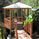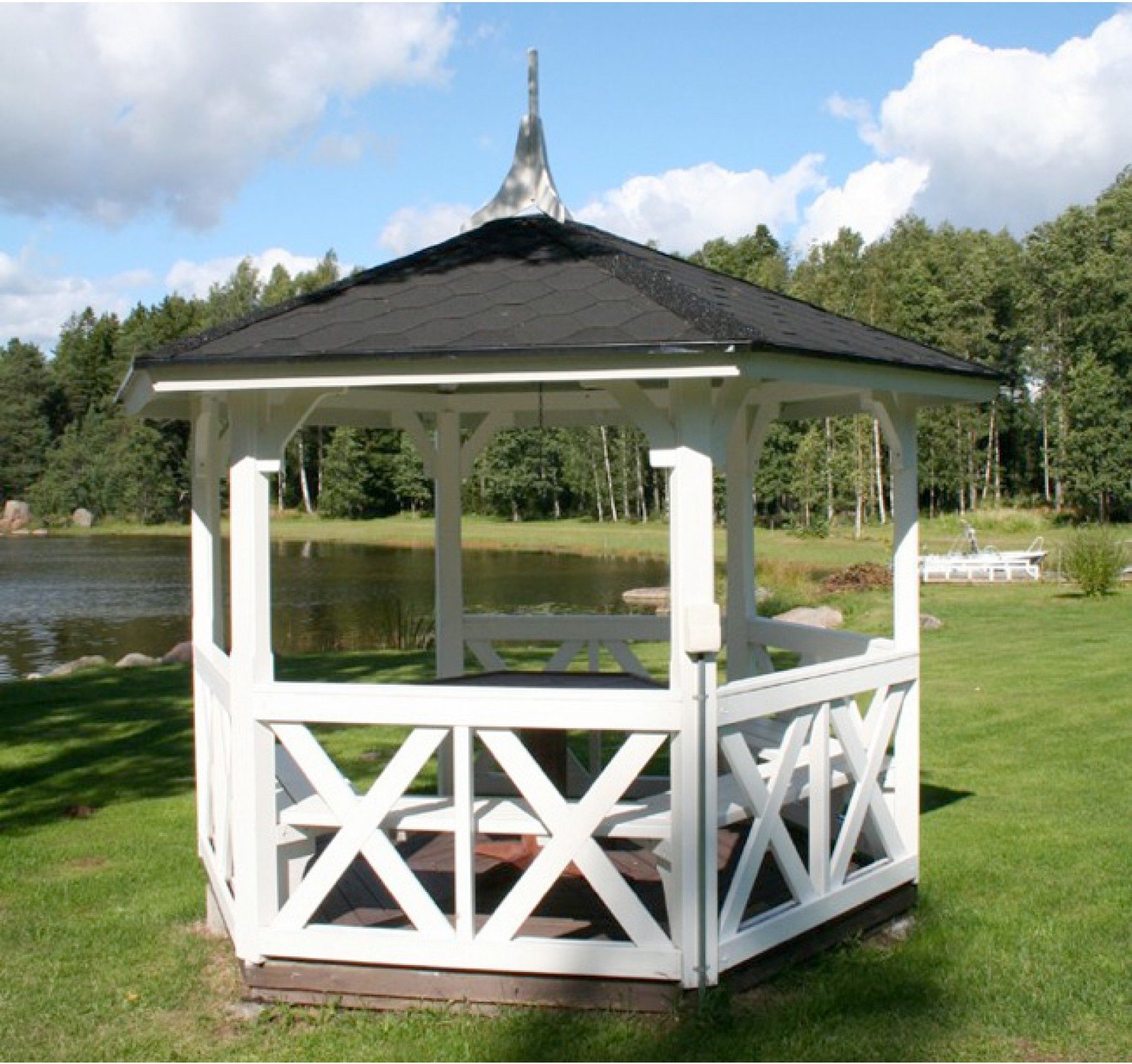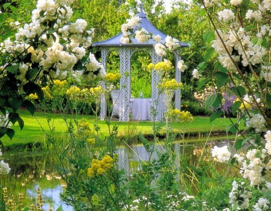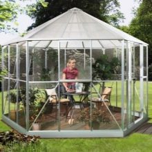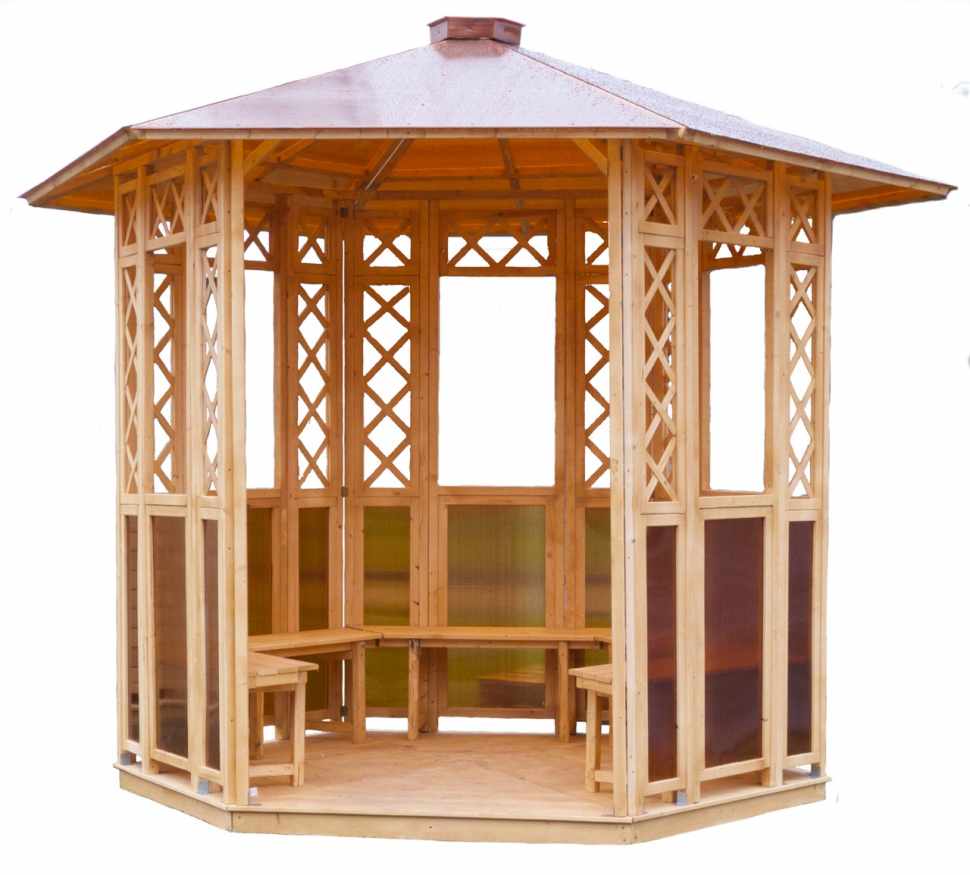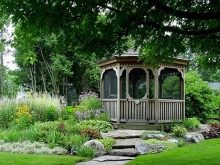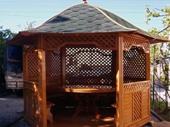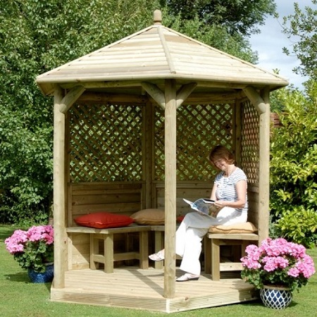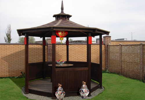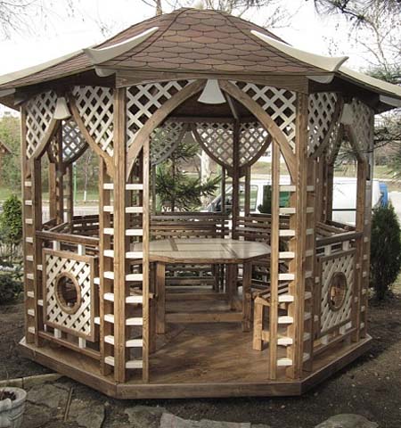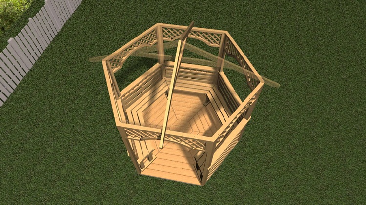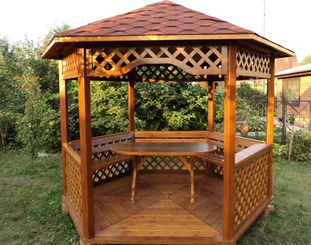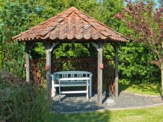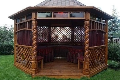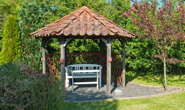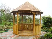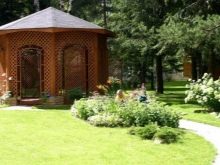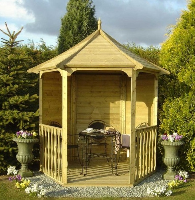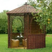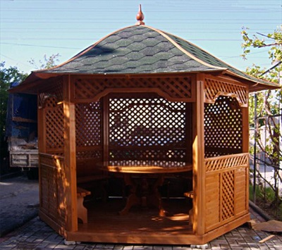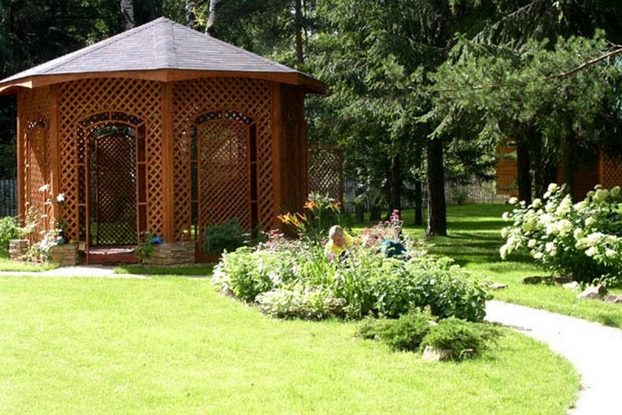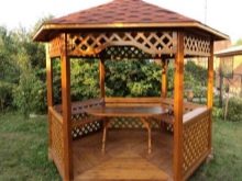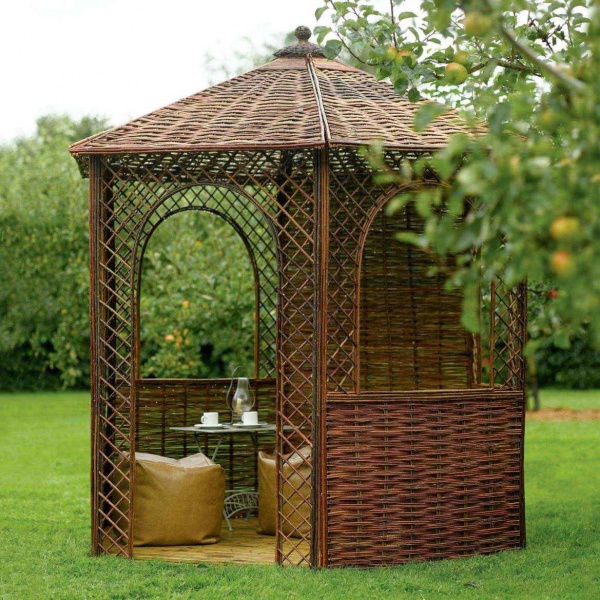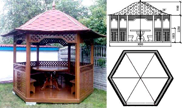 Si nécessaire, plantez autour du périmètre d'un raisin ou d'une autre plante grimpante.Cela créera une atmosphère d'intimité et de confort, tandis que les bâtiments à 6 côtés pour le jardin doivent être placés correctement.