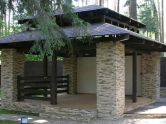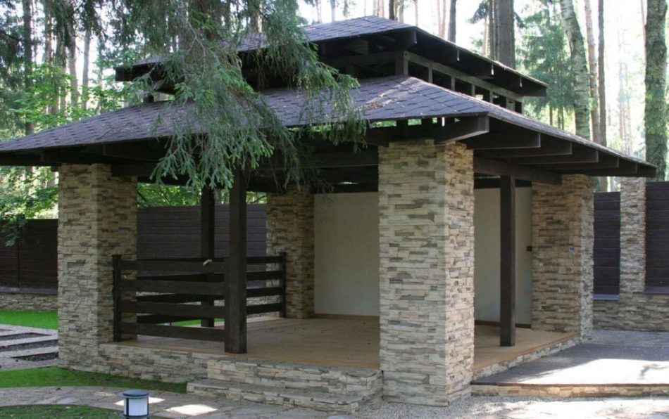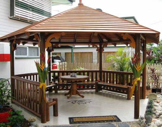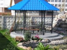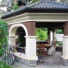 Dans le cas d'une exécution de haute qualité et d'une approche créative du décor, la nouveauté deviendra une véritable décoration de la cour et complétera parfaitement le design paysager de la propriété. Le meilleur endroit pour les célébrations est introuvable.