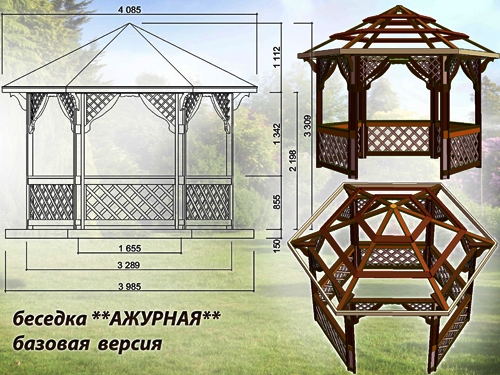 L’installation de tonnelles en bois n’est en réalité réalisée que de deux manières: sur une base de châssis et avec des barres. La première option est généralement appliquée dans un complexe par rapport à tous les bâtiments du site. La seconde permet une totale liberté dans le développement d’une variété constructive de modèles projetés.