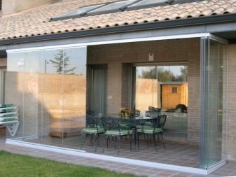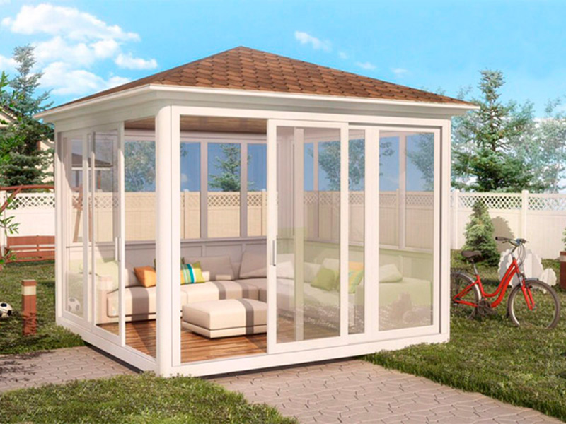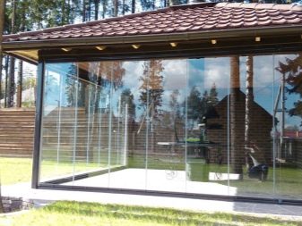 Ces gazebos de vitrage permettent une utilisation rationnelle de l'espace interne. Les mécanismes coulissants vous permettent de rendre votre séjour dans le belvédère plus confortable. Si nécessaire, de tels murs ou portes peuvent être pliés en transformant un bâtiment fermé en une structure semi-fermée. Cette méthode est une variante du type froid.