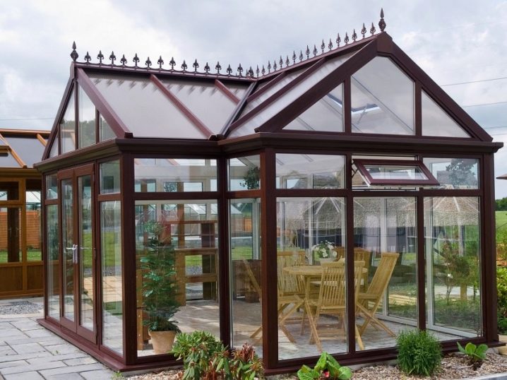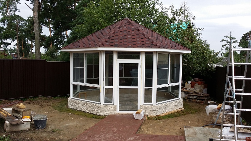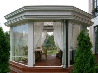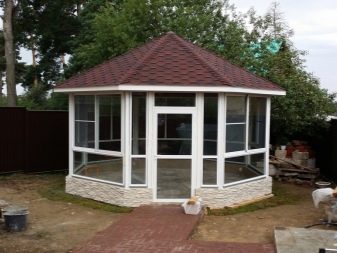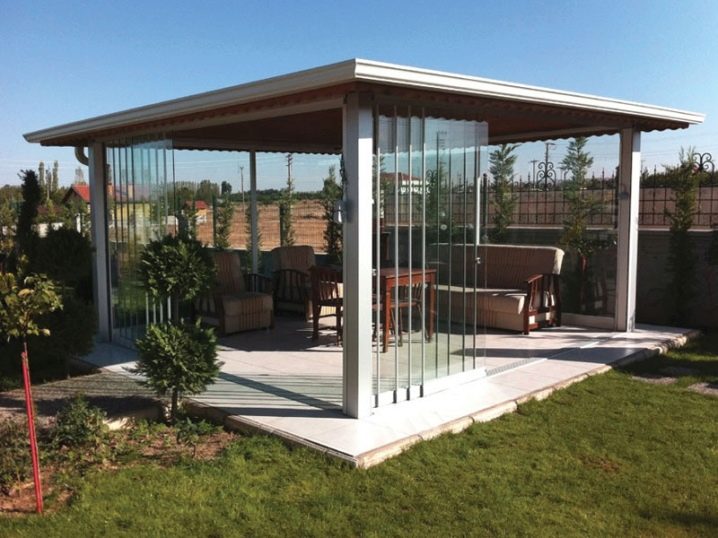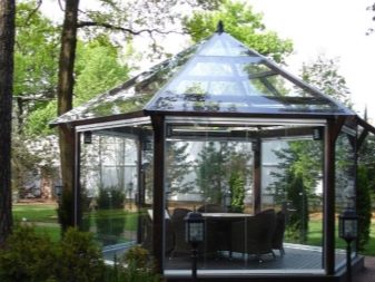Les pavillons de vitrage peuvent être réalisés de différentes manières, choisies au stade de la conception en fonction de la destination. En même temps, le matériau permet de rendre n'importe quelle structure légère, de donner à la tonnelle un attrait esthétique, de la rendre plus fiable et durable en termes de fonctionnement.