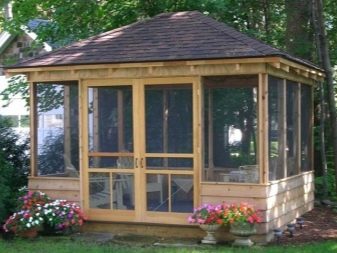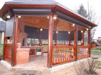 Vous pouvez revêtir un gazebo de différents matériaux, que ce soit la brique, le bois ou la pierre. Dans le même temps, le type de construction peut être combiné.
