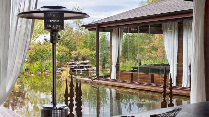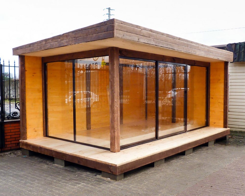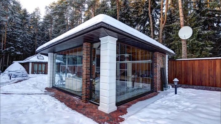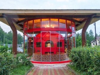 Aujourd'hui, la construction de pavillons vitrés vous permet d'en faire la décoration principale du site. Le design s'appuie sur les caractéristiques du paysage et le but du kiosque lui-même.