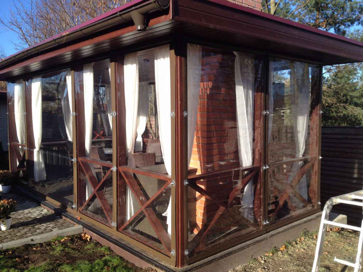 Les pergolas vitrées sont des structures de type fermé. Dans la plupart des cas, ils sont conçus pour être utilisés toute l'année et disposent du chauffage, de l'électricité et de l'eau. D'autres options sont plus appropriées pour l'été. Grâce au vitrage, ils protègent contre les insectes et les intempéries. Le verre vous permet d'économiser de la chaleur et de remplir le bâtiment de lumière naturelle. Grâce à cela, le séjour à l'intérieur devient confortable et, dans la plupart des cas, il est utile de créer une véritable maison à partir de bâtiments ordinaires dans lesquels vous pourrez organiser des séjours.