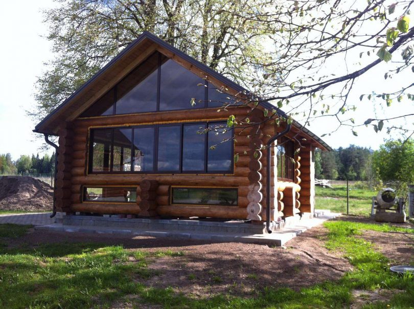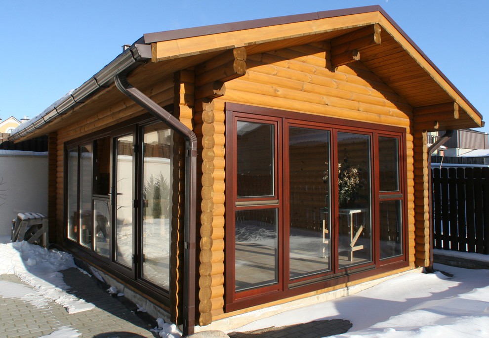 - Un exemple de vitrage combiné, imitation de la maison, en rondins.