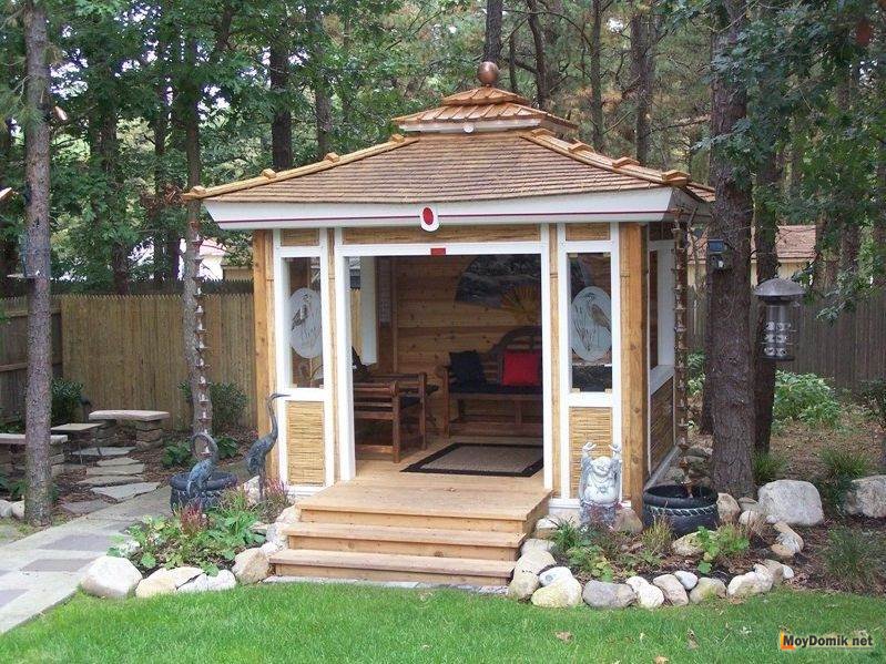 En plus de l’approche correcte pour le choix du matériau, il est important de prendre en compte l’emplacement du kiosque. Il devrait être à une certaine distance de la maison, mais l'accès devrait être pratiqueEt à cet égard, beaucoup dépend des caractéristiques du paysage d’une parcelle donnée.