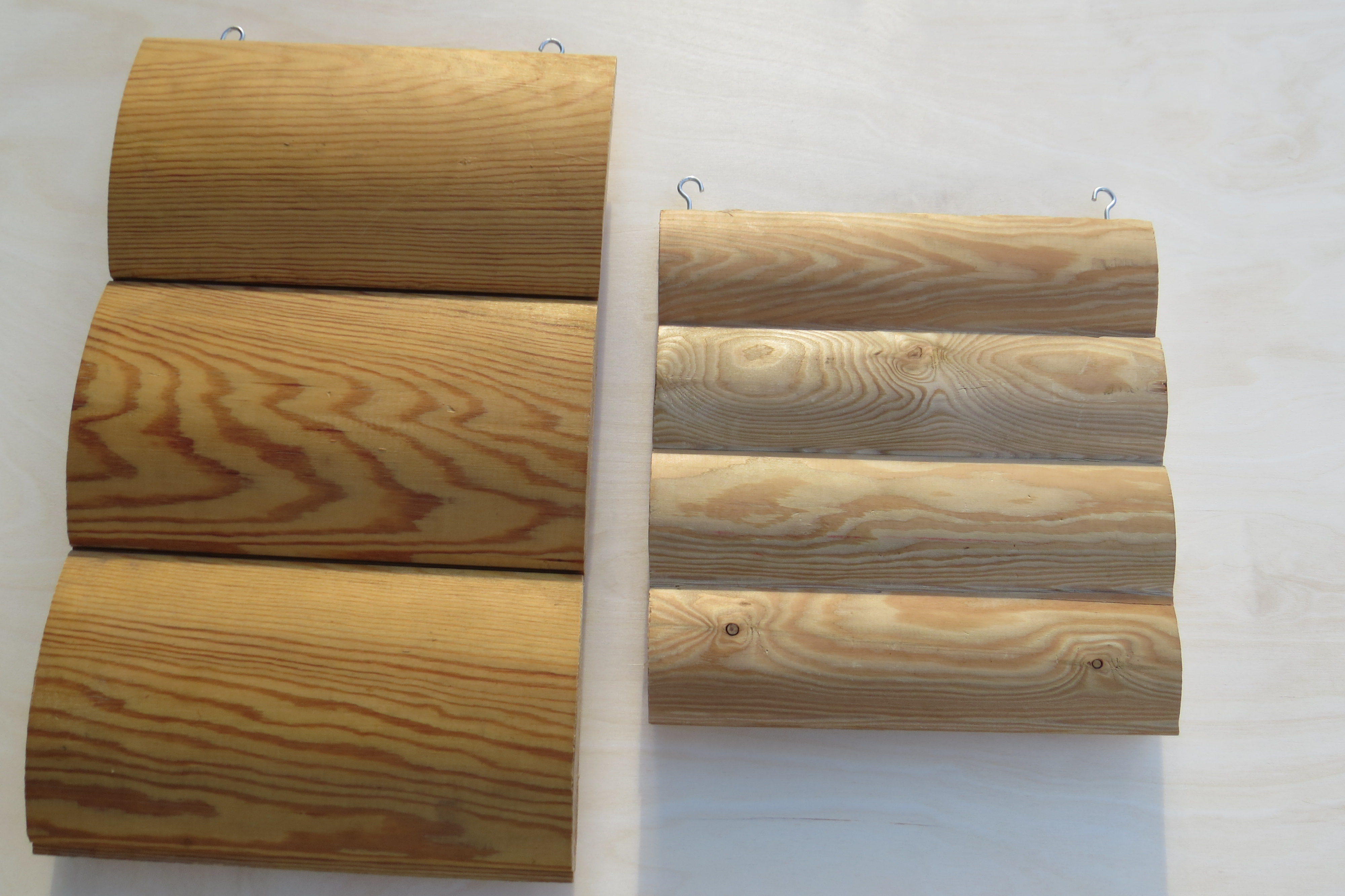 Les produits de mélèze ont une haute protection naturelle contre les scolytes grâce à la composition de la résinepar conséquent, leur traitement avec antiseptique n'est utilisé que comme assurance supplémentaire. La coloration avec de la peinture colorée est très rarement utilisée car la structure naturelle du bois est très expressive. Les anneaux annuels du canon sont clairement visibles sur les détails avec une coupe latérale. Ils ont une couleur orange naturelle. Certains clients commandent une imprégnation avec une teinture pour améliorer visuellement la texture de la coupe.