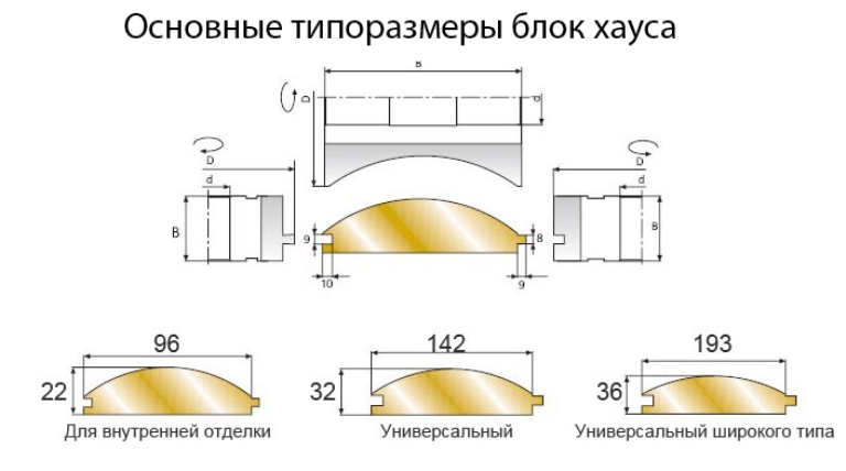 Un blockhaus peut être universel. Dans ce cas, ses dimensions seront plus grandes en largeur et en longueur que pour le travail interne. Avec une longueur de 3-6 m, l’épaisseur et la largeur de la planche sont de 36x142 mm.