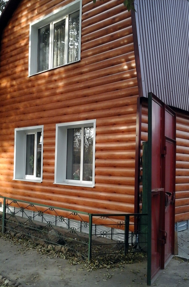 Vous ne pouvez pas ignorer l'imitation artificielle des journaux. En plus du bois, le blockhaus est fabriqué à partir de vinyle et de matériaux métalliques.Une telle finition est beaucoup moins chère et ne nécessite pas de traitement supplémentaire pour se protéger contre les parasites et les champignons.