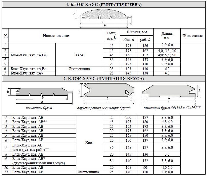 Actuellement, il existe 4 classes de block-house: extra, A, B et C. Les planches extra-classes sont totalement exemptes de défauts et au prix le plus élevé. Dans la classe A, il peut y avoir des nœuds et, par conséquent, le prix de ce matériau est légèrement inférieur. Dans les planches de la catégorie B, il existe déjà des dommages mineurs de nature mécanique. La classe C montre la mauvaise qualité du tableau, mais est également moins chère. Il existe également des catégories mixtes en vente: AB et BC.