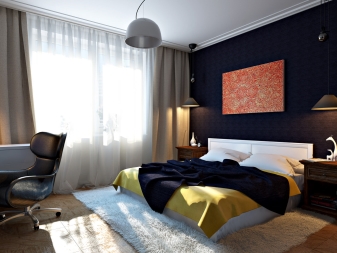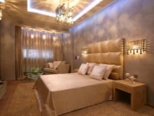 Ce n’est un secret pour personne que la salle de repos n’a pas besoin de lumière vive. Des nuances de lumière douces et chaudes feront l'affaire. C'est ainsi que vous obtenez une atmosphère de calme, de détente et d'harmonie. Assurez-vous d’envisager d’éclairer votre chambre à coucher, y compris les lampes murales et les lampes de table dans le rôle de lampes de nuit.