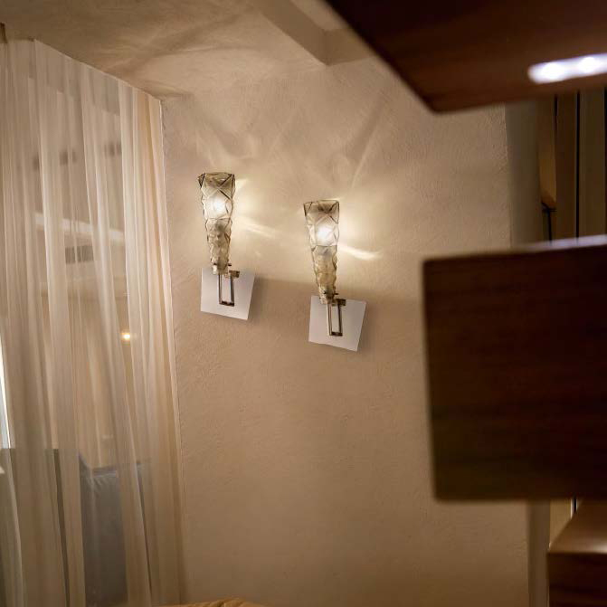 Ce fabricant présente des lampes dans trois domaines principaux: le style classique, éclectique et unique d’Ottocento. Ce sont des appliques chics en verre de Murano avec des plafonds de la forme populaire de Damas, qui sont décorés de pendentifs scintillants.Des perles de cristal multicolores, des dorures, des abat-jours en organza et de la soie imprimée sont transformés en modèles luxueux de la forme classique.