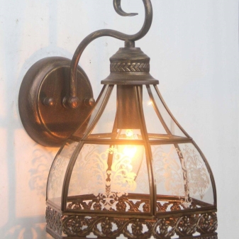 - Pour les styles de campagne et de provence Il est préférable de choisir des formes murales simples, l’appareil avec un auvent en verre coloré (en forme de cylindre) aura fière allure ici.