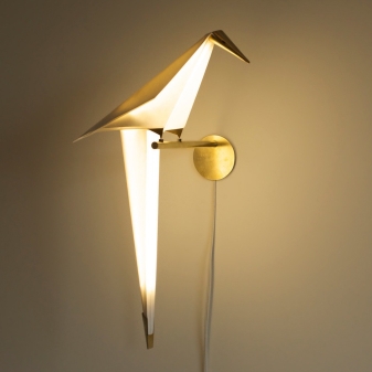 - Homeli Designwrld. Applique en forme d'oiseau. Pour sa réalisation, du verre dépoli blanc et du métal de couleur or ont été utilisés. Une option idéale pour décorer une pièce dans un style animalier.