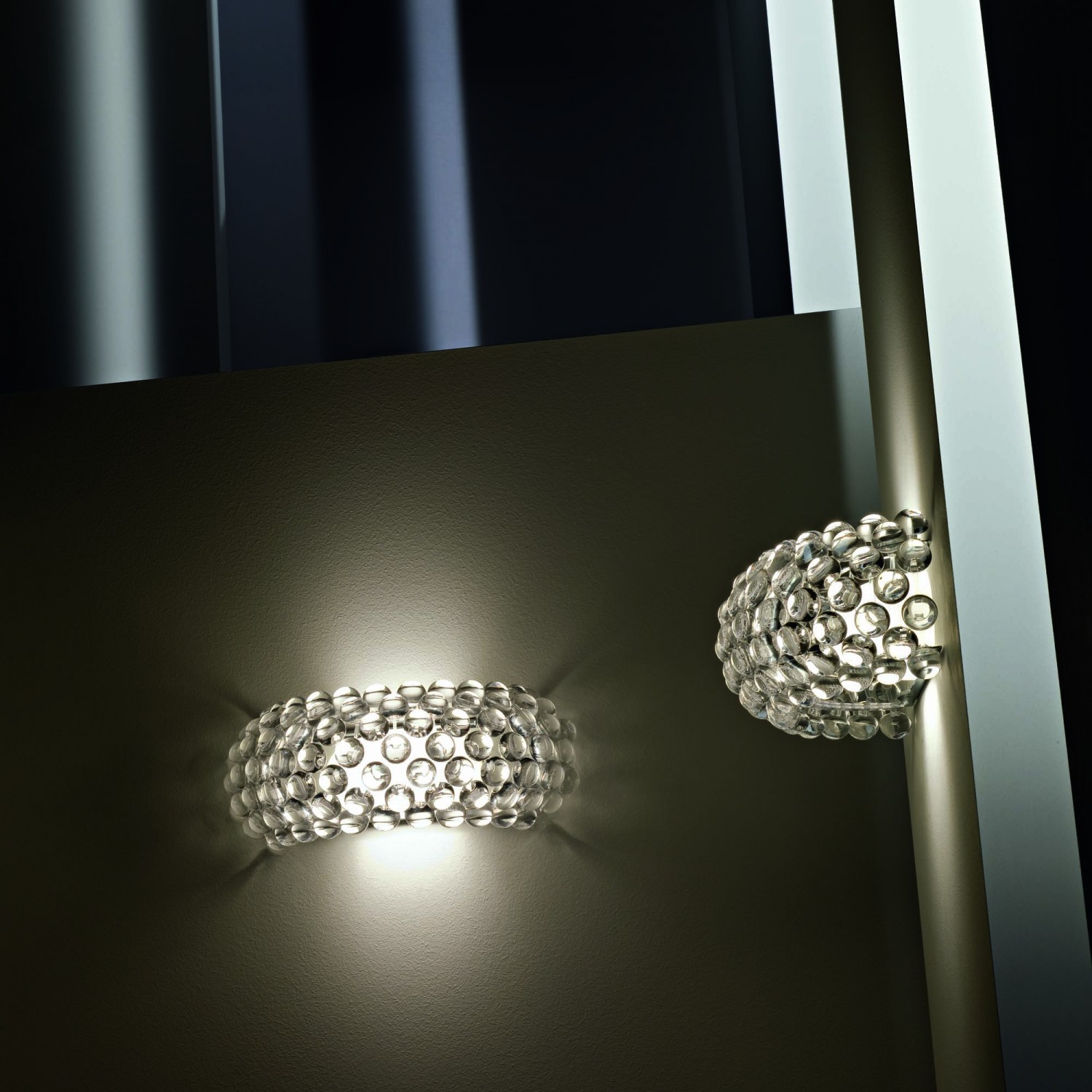 - Foscarini Caboche Mur Moyenne Argent. Applique est faite de cristaux de verre de taille accrue. Diffuse parfaitement la lumière, créant une atmosphère unique. Parfait pour la décoration de chambre à coucher dans un style glamour.