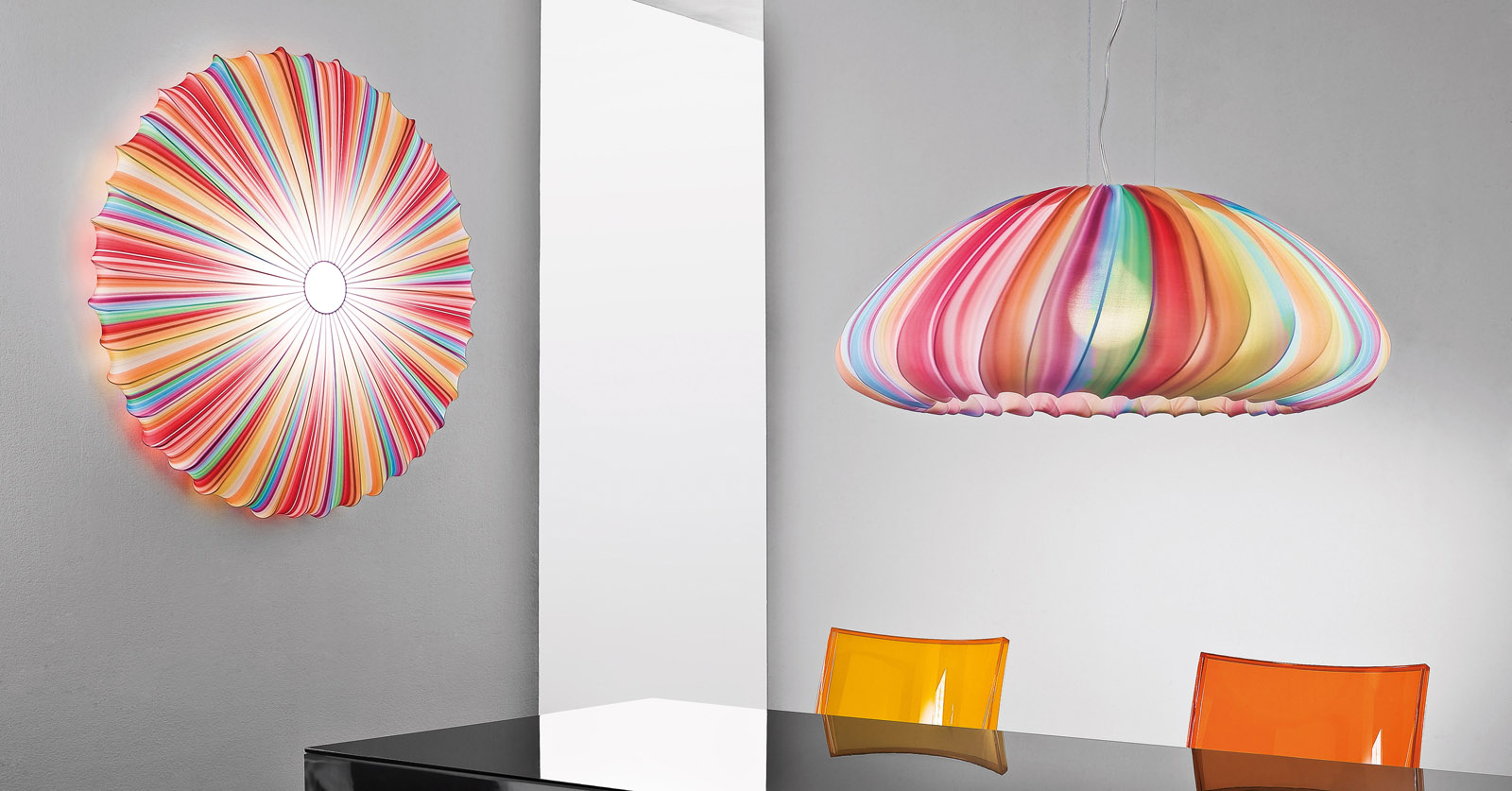 - Avec cette lampe, vous pouvez changer visuellement la géométrie de la pièce.Si vous avez des plafonds bas dans votre chambre, vous devez privilégier l’appareil dont le plafond de verre est dirigé vers le haut.