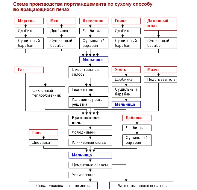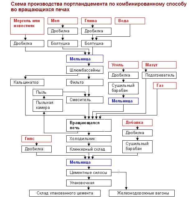 Pour obtenir cette composition, on utilise des roches carbonatées (calcaire, craie, alumine et silice), ainsi que des marnes (mélange de roches carbonatées et d'argile, une pierre de transition de calcaire à argile). Le processus de production commence par le broyage soigneux des matières premières et leur mélange dans certaines proportions. La prochaine étape est la cuisson des matières premières dans des fours à une température de 1300-1400 ° C. Le résultat de la refusion est un matériau appelé clinker.