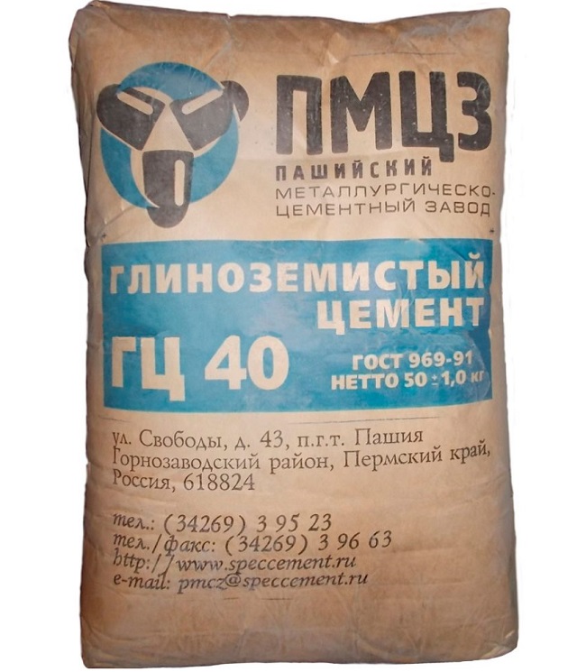 Une autre caractéristique de l’alumine est son inadmissibilité à être mélangé avec d’autres ciments et compositions à base de chaux, même en petites quantités contenant de l’alcali. Le ciment alumina portland convient à la fabrication de solutions de béton résistant aux acides, remplissant des roches résistantes aux acides (granite, beshtaunita). Le temps de prise est d'environ 8 jours.