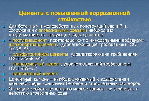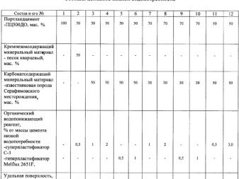 Ainsi, en fonction de la composition de destination, émettent une construction générale et des compositions spéciales. Si la composition est prise comme base, il est alors possible de désigner des variantes avec une valeur min. additifs et ciment pur.