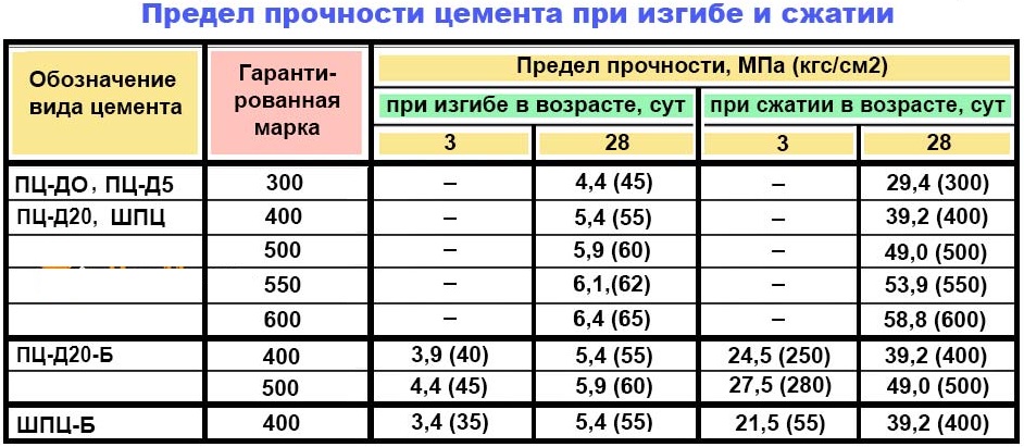 L'indicateur de la résistance du ciment est calculé par la méthode de compression de l'échantillon, qui est conservée pendant 28 jours. Lors du test de ciments de différentes qualités, la résistance à la compression est également différente. L'industrie moderne produit des ciments pour lesquels cet indicateur est 300, 600, ainsi que 700 et 1000.