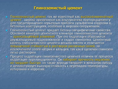 De plus, ce ciment est un matériau de base pour la culture de solutions en béton, utilisées lors des travaux de plâtrage et de maçonnerie.